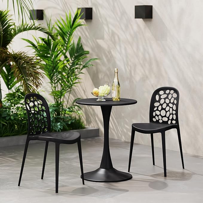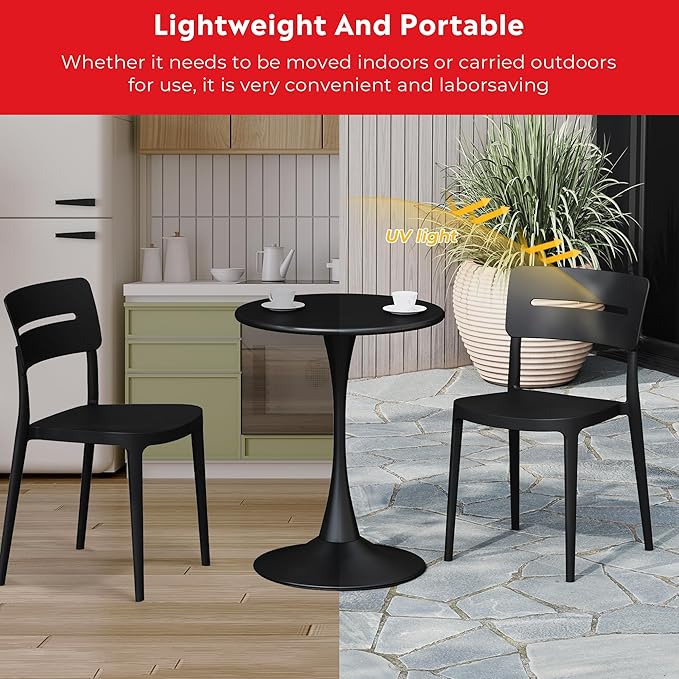 Costaelm Small Dining Table, Round PP Outdoor Table, Weather Resistant Balcony Table for Outside Poolside Deck Lawn Garden Backyard, Black