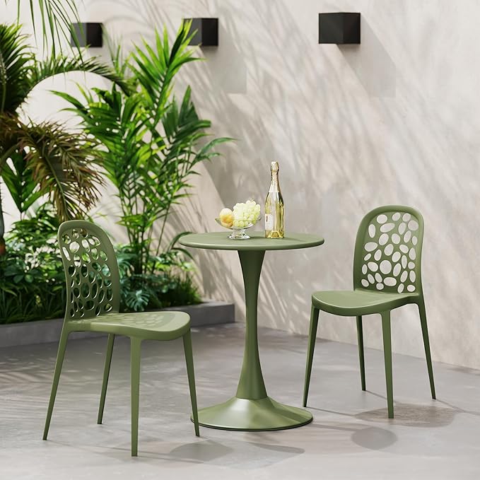Costaelm Small Dining Table, Round PP Outdoor Table, Weather Resistant Balcony Table for Outside Poolside Deck Lawn Garden Backyard, Olive Green