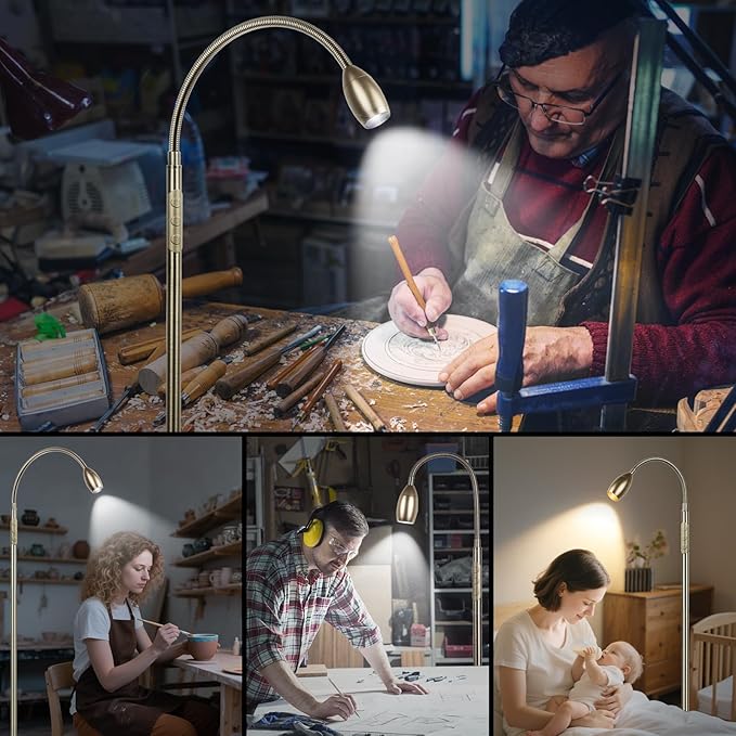 - Extra Flexible and Elegant Gooseneck - 360° adjustable gooseneck helps direct the light to any area you need. This slim and sleek profile not only helps save table and desk space, but also matches easily with any home decor style. Cannot wait but to light up any corner of your home with this stylish LED floor lamp in a deep bronze metal finish. You can imagine this multifunctional lamp to be a perfect Birthday, Housewarming, Wedding and Christmas gift.