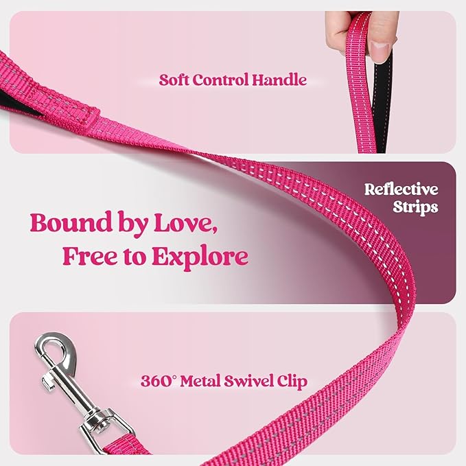 - Dog Harness with Leash Set: The color-matching harness and leash with reflective bands make it fashion and visible for pet outing. The leash is 5.12ft in length, with an anti-tangling clip and a palm-friendly handle