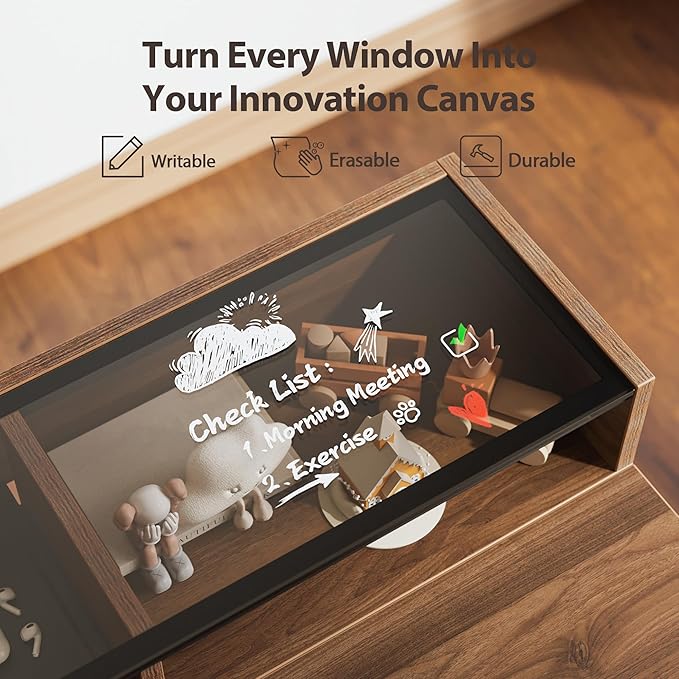 - 【Premium Glass Top Shelf】With its fluid lines and graceful form, the glass shelf transforms your workspace into a vision of modern elegance. The sleek, tempered glass surface not only exudes style but is always ready to capture every spark of inspiration with effortless ease.