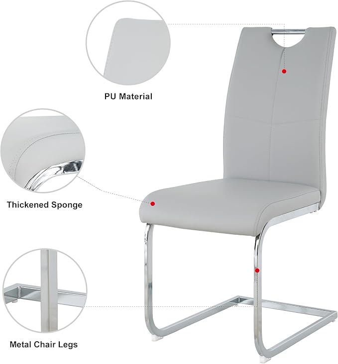 • ➤【Ergonomic & Comfortable Dining Chairs】- The pu leather dining chairs are complete with metal legs for stable and strong support. Good quality pu leather and a soft padded seat really feel soft when you sit on it. Ergonomic curved high back provide day-long comfort without feeling back pains. Chair Dimension is 22.6"L*16.5"W*38.3"H.