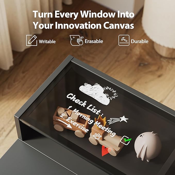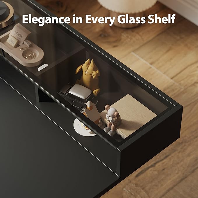 - 【Premium Glass Top Shelf】With its fluid lines and graceful form, the glass shelf transforms your workspace into a vision of modern elegance. The sleek, tempered glass surface not only exudes style but is always ready to capture every spark of inspiration with effortless ease.