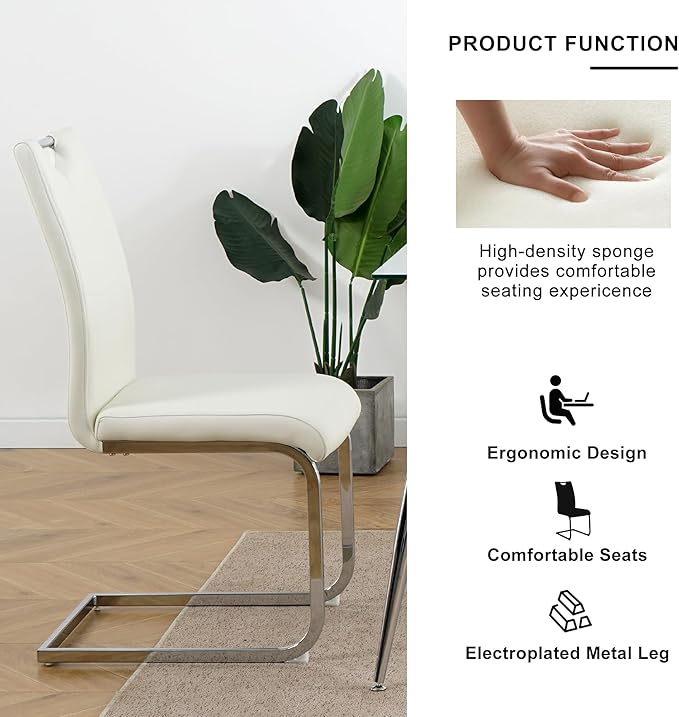 - ➤【Ergonomic & Comfortable Dining Chairs】- The pu leather dining chairs are complete with metal legs for stable and strong support. Good quality pu leather and a soft padded seat really feel soft when you sit on it. Ergonomic curved high back provide day-long comfort without feeling back pains. Chair Dimension is 22.6"L*16.5"W*38.3"H.