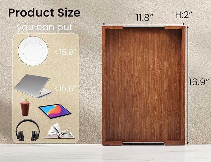 - 【Versatile Usage Scenarios to Meet Diverse Needs】 This serving tray is large in size and versatile in use, with dimensions of 16.93*11.81inches. It is not only suitable for use as a dining tray in the restaurant but can also serve as a coffee table tray in the living room, a bedside tray in the bedroom, or a stationery tray in the study, fulfilling your diverse needs across different settings.
