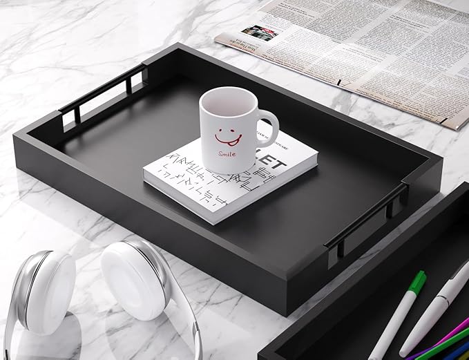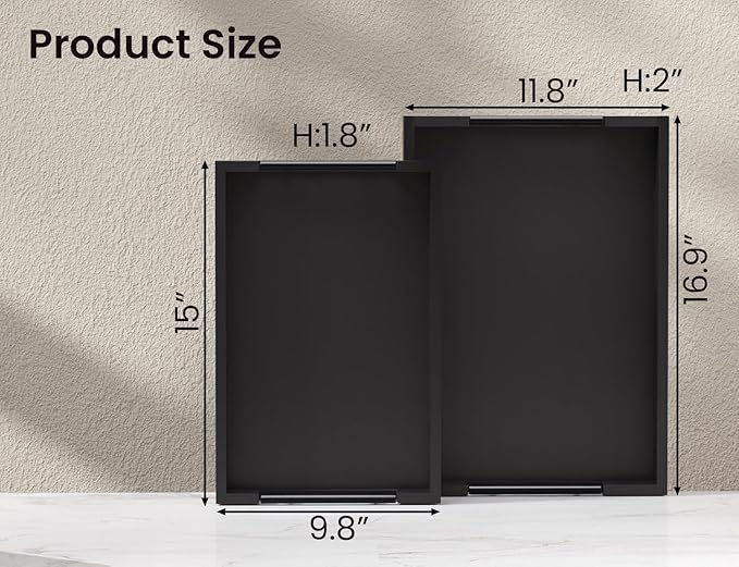 - 【Large & Small 2-Piece Set,Adaptable to Multiple Scenes】 The set contains two trays, large tray (16.93"x 11.81") and small tray (14.96" x 9.84"), the small tray can be perfectly nested in the groove of the large tray, saving space and convenient storage when not in use. Flexible to fit coffee table, living room, restaurant, bar and other scenes.