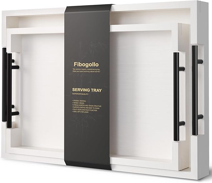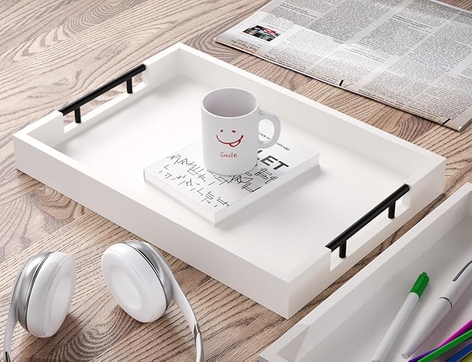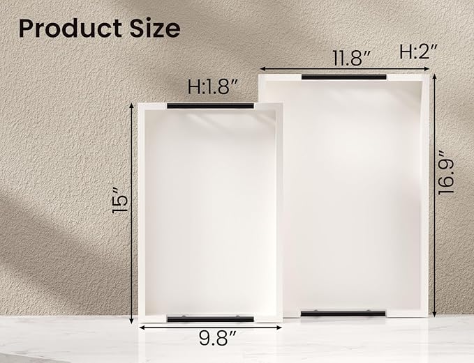- 【Large & Small 2-Piece Set,Adaptable to Multiple Scenes】 The set contains two trays, large tray (16.93"x 11.81") and small tray (14.96" x 9.84"), the small tray can be perfectly nested in the groove of the large tray, saving space and convenient storage when not in use. Flexible to fit coffee table, living room, restaurant, bar and other scenes.