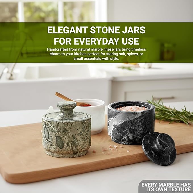 - Handcrafted Marble Salt Cellar with Lid: Add timeless charm to your kitchen with UrbanFocal elegant marble salt cellar. Handcrafted from natural marble, each salt container features unique veining that makes every piece one of a kind, a stylish and durable accent for modern kitchen decor.