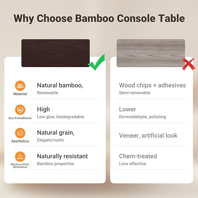 - Natural Metrial: Made from 100% sustainable bamboo—stronger than MDF, moisture-resistant, no formaldehyde or toxins, doubles as a charging hub and display shelf for keys, plants, or framed photos—keeps your living room tidy and stylish