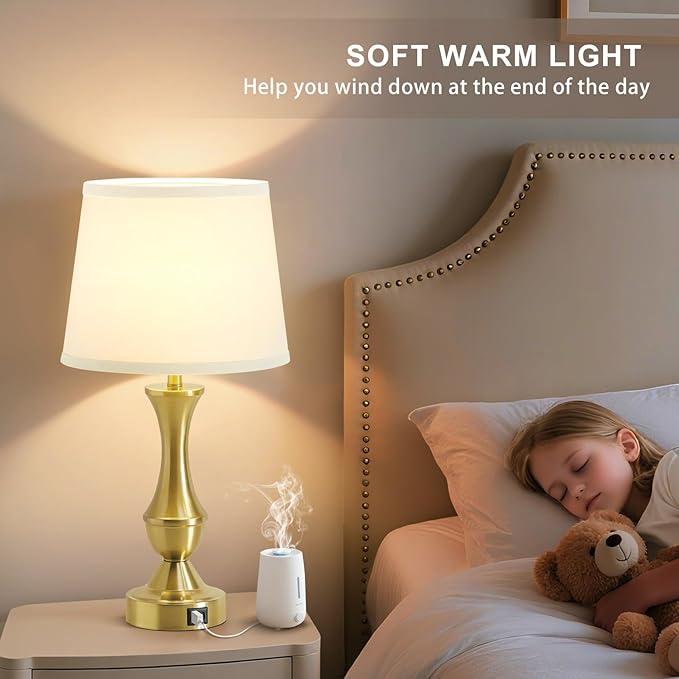 Luvkczc 22" Gold Table Lamps Set of 2 - Modern Luxury Bedside Lamps with White Fabric Shade, Dimmable & Dual USB C+A Ports, Nightstand Lamps for Bedroom/Living Room (Bulb Included)