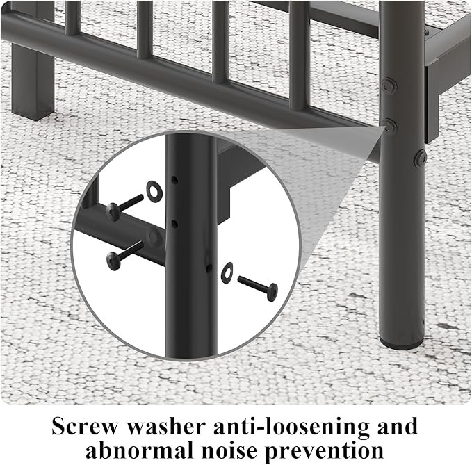 - 【Ample Under-Bed Storage Space】: The metal bed frame offers ample storage space underneath, with approximately 12 inches of vertical clearance to accommodate a variety of storage boxes, providing a convenient and space-saving storage solution ideal for maximizing storage space in a small living space or bedroom.