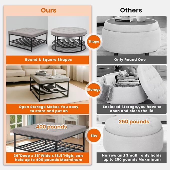 - CHIC FARMHOUSE DESIGN: Enhance your living area with the Ottoman Coffee Table, showcasing a chic square design and charming farmhouse style, ideal for blending seamlessly with any interior decor