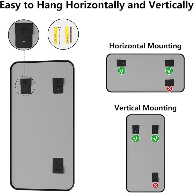 - No-Fuss Installation – Ready in Minutes: Comes with all hooks/hardware for vertical or horizontal hanging—no extra tools needed. Install this bathroom sink mirror before your coffee gets cold! Perfect for renters, DIYers, or anyone who hates complicated setups. Transform your space in minutes, whether above the sink, in the entry, or living room.