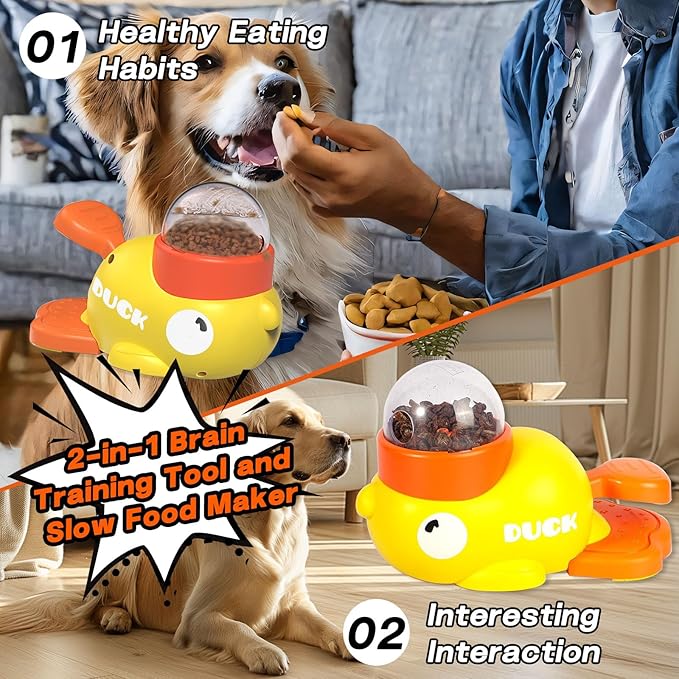- New duck dog toy:Duck-shaped puzzle toy combines food dispensing with mental stimulation,Helps with IQ training and cognitive development,Let your dog eat healthier,Slows down your dog's eating speed,improves digestion and prevents bloating。It can also be used as an interactive feeder to make your dog's life more active and interesting