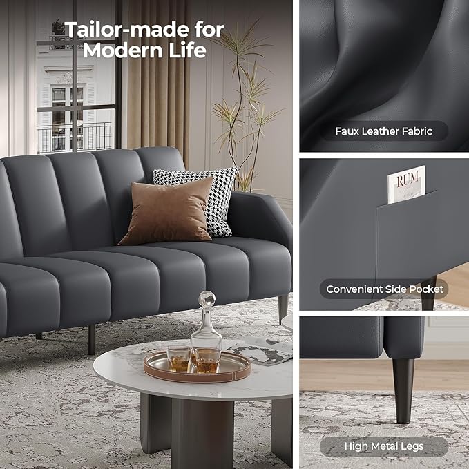 - Mid-Century Inspiration - The overall inspiration for the futon sofa comes from mid-century leather sofa, which have been improved in the details by adopting a modern and minimalist line design. Linear and uncluttered look create a sense of gentle simplicity, making it easy to incorporate into a wide range of decorative style. With soft grain and matte finishing, the leather sleeper sofa is a perfect balance of style and comfort
