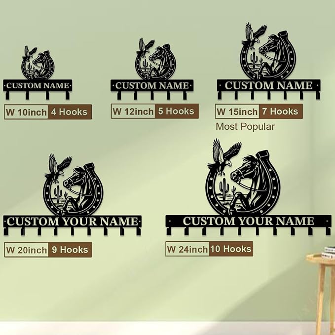 Custom Western Cowboy Metal Iron Key Hooks,Personalized Name & Text Engraving,Decor Wall Keys Holderfor Home Entryway (Style E)