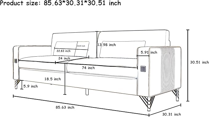 - 【Space-Saving Size with Comfort】With an overall length of 85.63", this sofa is great for compact homes without sacrificing comfort. It's roomy enough to stretch out, yet sized right for smaller living rooms or apartments