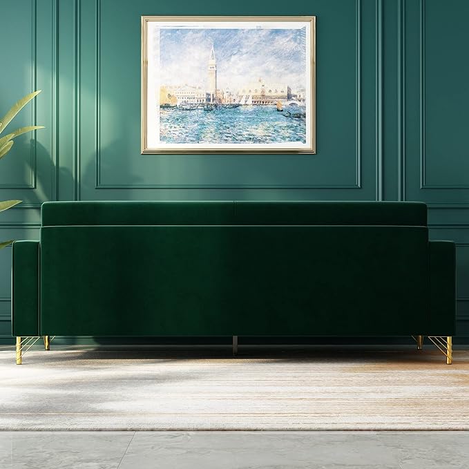- 【Chic Design with Gold Metal Legs】Featuring sleek gold-finished metal legs and minimalist lines, this velvet sofa brings a sophisticated, modern look to any living space—ideal for apartments, bedrooms, or stylish living rooms