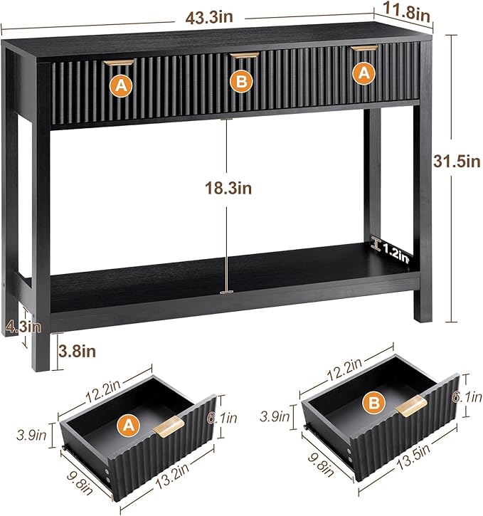 - 【Modern Console Table with Generous Fluted】The console has a charming farmhouse-style decor. Its impressive length of 43 inches supply space for the display of decorative pieces like lamps, photo frames, or vases, creating a warm ambiance in your room.