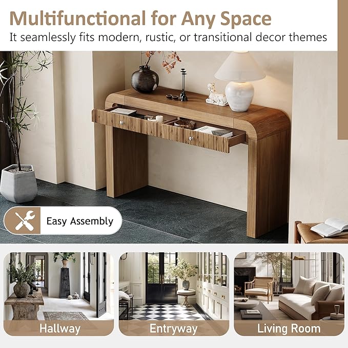 - ❤️🔥Multifunctional for Any Space: With rounded edges and clean lines, it seamlessly fits modern, rustic, or transitional decor themes. The minimalist look elevates any room’s visual charm. Use as an entryway console, sofa table, or hallway storage. Its compact size and versatile style fit small apartments or large homes. Easy to assemble and maintain, it’s a practical addition to your living space.