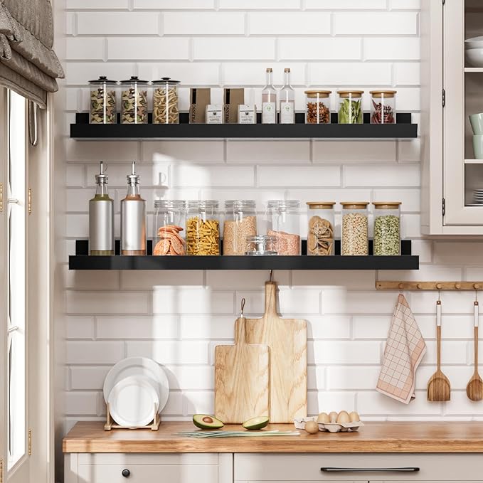 Heimlove Floating Shelves Set of 6, 24" Wall Mounted Picture Ledge, Display Shelf Organizer for Decor Storage, Wall Mounted Shelves for Living Room, Bedroom, Bathroom, Kitchen (Black)