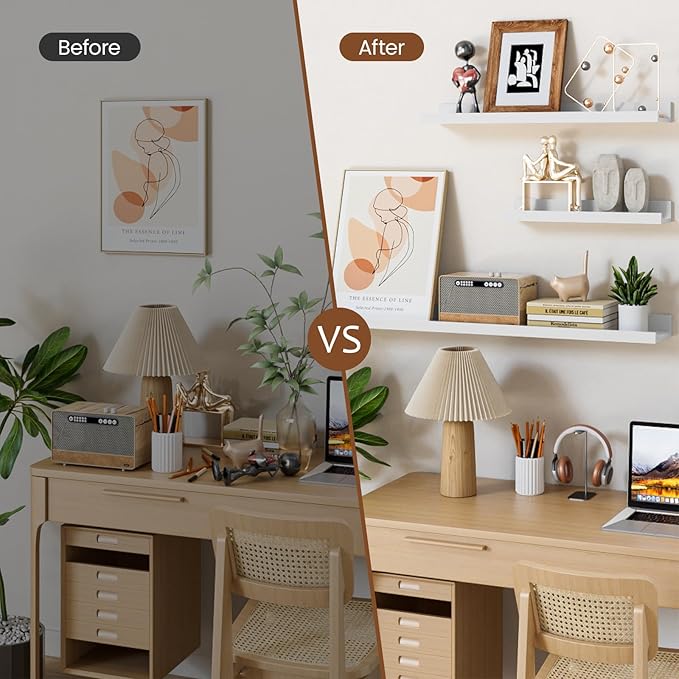 - 【Enhanced edge protection】These floating wall frames feature carefully designed front edges with protective frames at the front, providing additional protection to prevent items from slipping or falling off. Can securely display your items, including decorations, photo frames, and indoor plants, to prevent them from slipping off. Ensure that your supplies are securely placed.