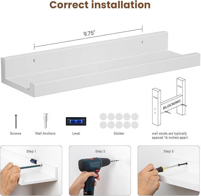 - 【Easy Installation】Say goodbye to the complicated installation trouble, the shelf has been drilled, making it easy to install the wall bracket on the wall. Equipped with all hardware and intuitive instructions, the package comes with necessary sturdy hardware such as screws, wall anchors, and assembly instructions for easy assembly. Installation can be easily completed in just a few minutes, and these white shelves can be easily installed on the wall.