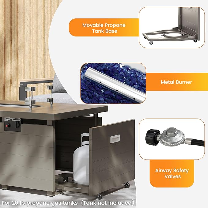- Powerful 50,000 BTU Heat: The fire pit table boasts a robust 50,000 BTU burner, providing ample warmth for chilly evenings and creating a cozy atmosphere for outdoor gatherings