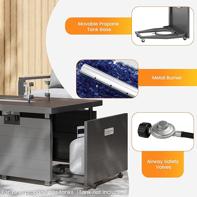 - Powerful 50,000 BTU Heat: The fire pit table boasts a robust 50,000 BTU burner, providing ample warmth for chilly evenings and creating a cozy atmosphere for outdoor gatherings