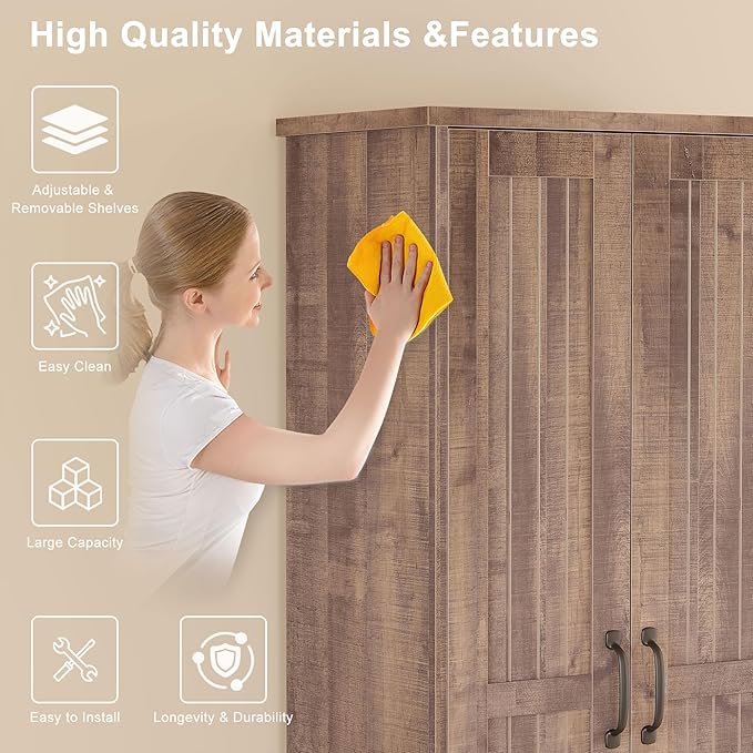 - Large Storage & Multi-Purpose: Our large storage cabinet can store such as tableware storage, dry goods, cleaning supplies, electrical appliances, nursing supplies, large items, entertainment supplies, bedding, electronic products etc.; Tall storage cabinet are suitable for kitchens, bathroom, living rooms, dining room, restaurants and other scenes