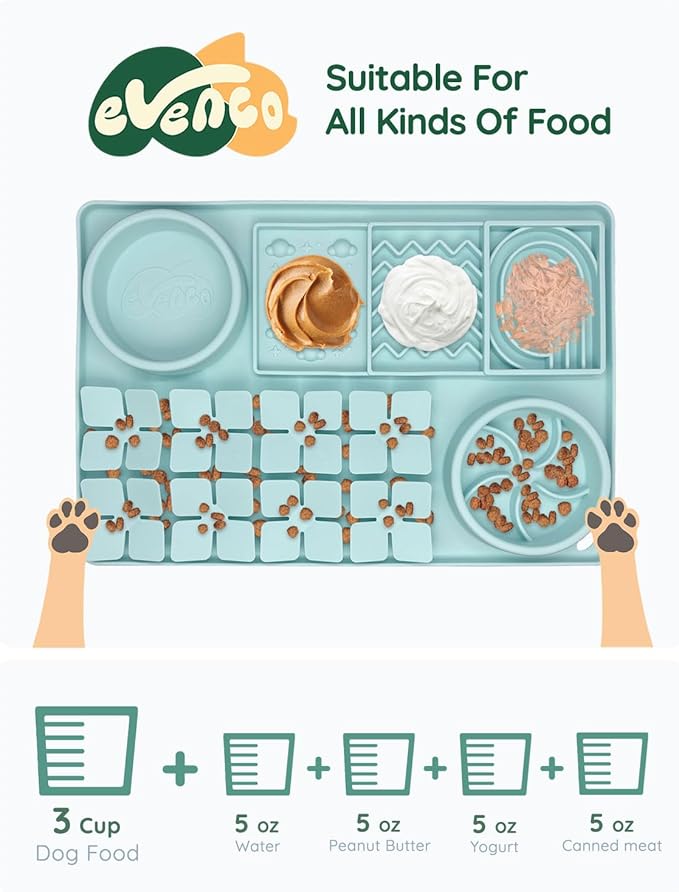 - UPGRADED 4-IN-1 FEEDER: Our multifunctional slow dog feeder includes a slow-eating bowl, a dry food bowl, a snuffle area for mental stimulation, and a lick mat with 3 patterns. Ideal for enhancing the lives of dogs and cats, and a thoughtful gift for a multi-pet family.