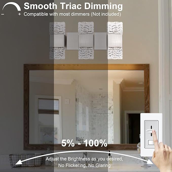 - Energy Saving & Smooth Dimming: This 24W led vanity light saves up to 80% electricity compare to conventional light bulbs and lifespan up to 50,000hours. The modern led bathroom lights compatible with most LED dimmers on the market (not included), allows you to adjust the LED light output luminance