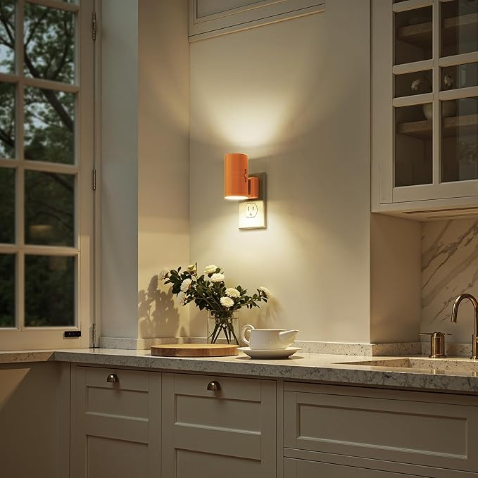 - Vintage Style LED Night Light – Briignite’s LED night lights plug into wall features a sleek bright orange cylindrical frame with a minimalist design, offering a rustic yet modern touch to your space. Perfect for creating a cozy atmosphere in your hallway, bedroom, or as a bathroom night light.