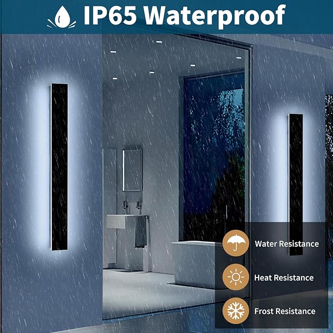 - Sleek & Durable Led Garage Strip Lights: Enhance your home's exterior with these black aluminum wall lights featuring a minimalist rectangular design. Perfect for outside led lights for house, led porch lights outdoor, outdoor garage porch lighting led, and modern fence lighting, they blend seamlessly with various architectural styles. The IP65 waterproof rating and robust construction ensure reliable performance in all weather conditions, making them ideal for patios, garages, and any outdoor space requiring durable and stylish lighting.