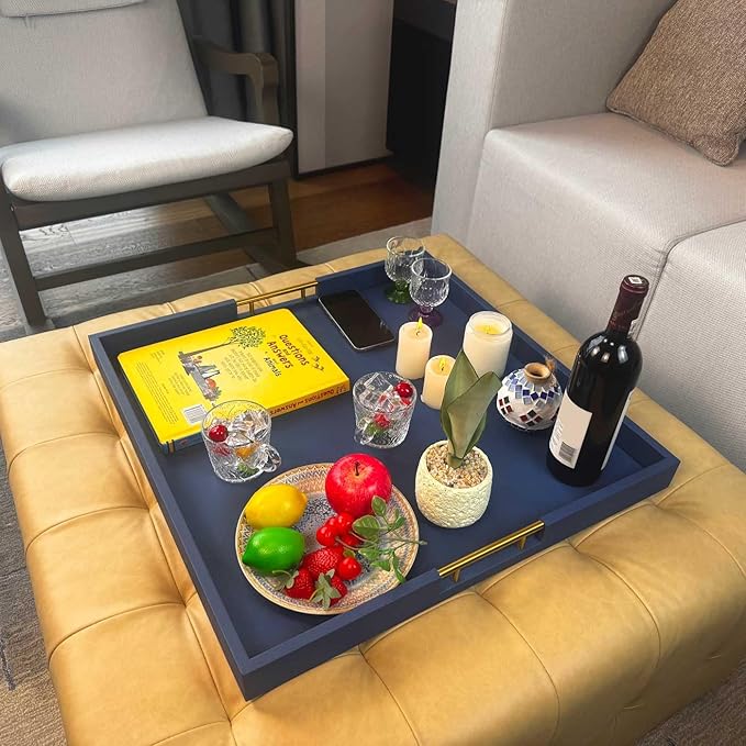 - Versatile and multipurpose using for all occasions: Serving tray for breakfast on bed, Organizer tray on ottoman,decorative tray when putting on a desk or washing machine,as a picnic tray,Serving food ,beverages, snacks ,home decor and commercial use also