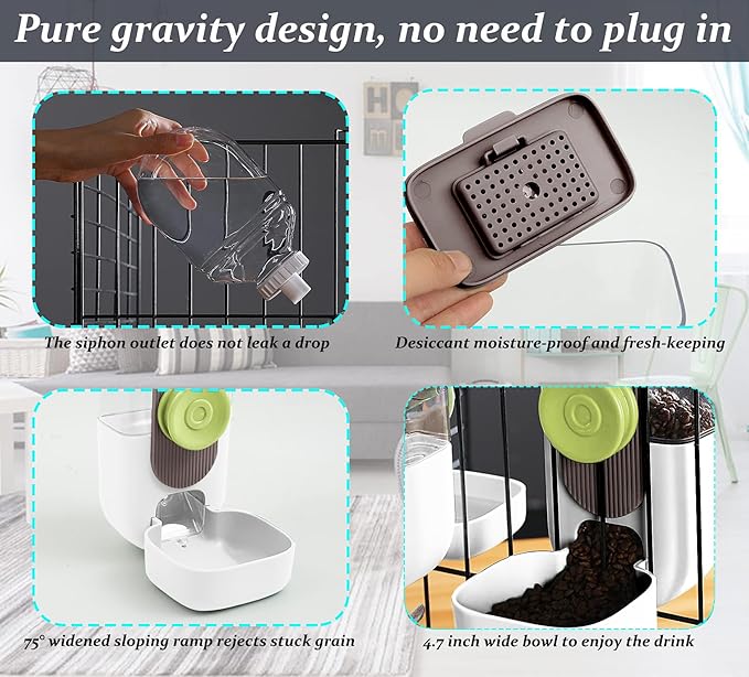- Automatic Refill Design : Natural gravity supply system, you can save electricity and more secure. Keep providing fresh water and plenty of food. Our gravity pet auto feeder with a 5cm food outlet and a 75° sloping ramp, food can be replenished smoothly, refuse to jam food