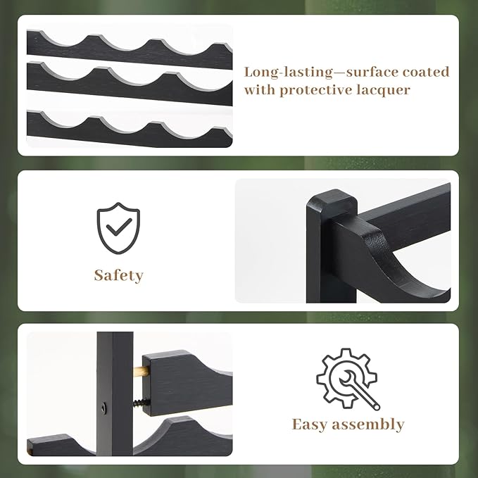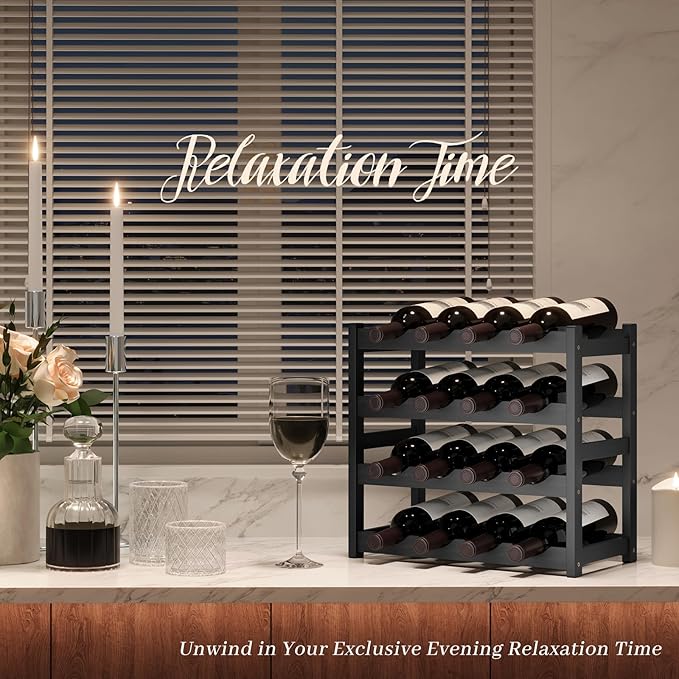Wine Rack,Bamboo Wine Storage Cabinet Shelf,Countertop Wine Shelf- Freestanding Wine Holder for Kitchen & Pantry (Black, 4-Tier)