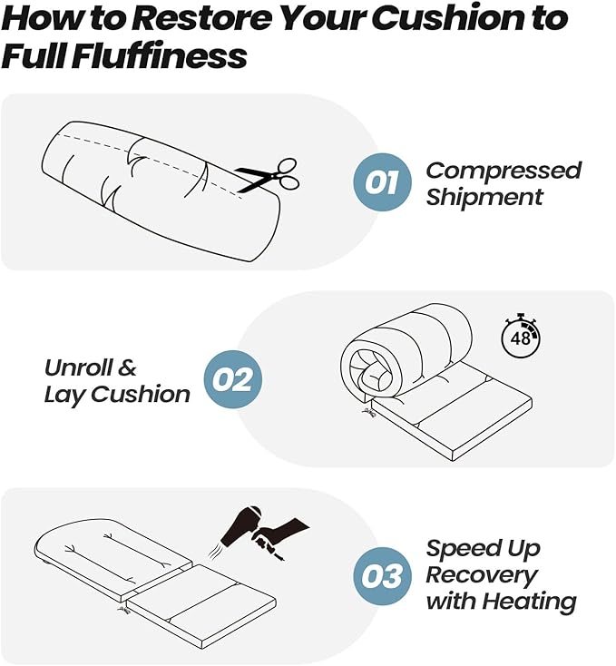 - Advanced Construction: Our chair cushions for outdoor furniture feature concealed stitching with reinforced anchor lines instead of traditional buttons, preventing filler shifts while maintaining consistent comfort and quality.