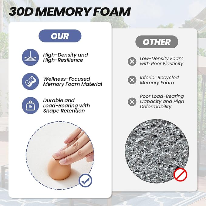 - Optimal Dimensions: Enjoy maximum comfort with 30D memory foam cushions (50"x20"x2.4") that perfectly fit both indoor and outdoor patio chairs, providing full-body support. Ideal for front porches and backyard retreats, the patio cushion enhances the seating area with its inviting feel.