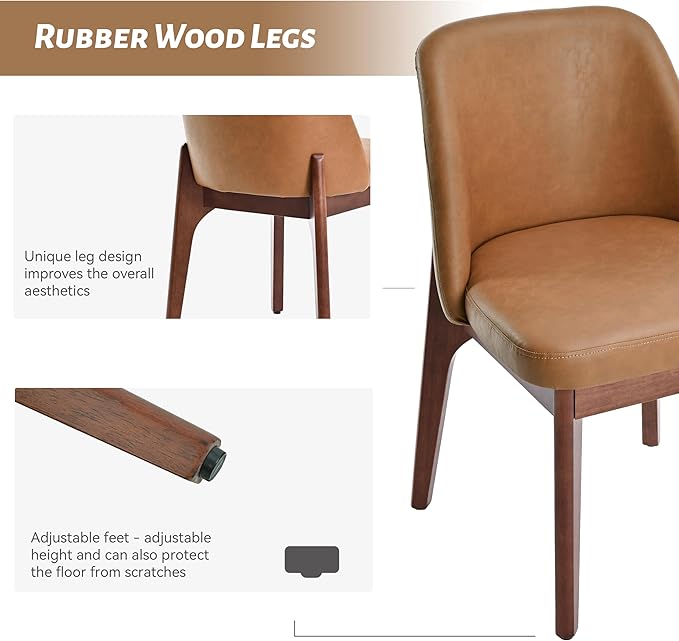 - Style Meets Comfort: The seats and backrests of mid century modern dining chairs are upholstered in high-quality faux leather, offering a luxurious touch and easy maintenance. Paired with high-density sponge padding, the faux leather not only ensures long-lasting comfort but also adds durability