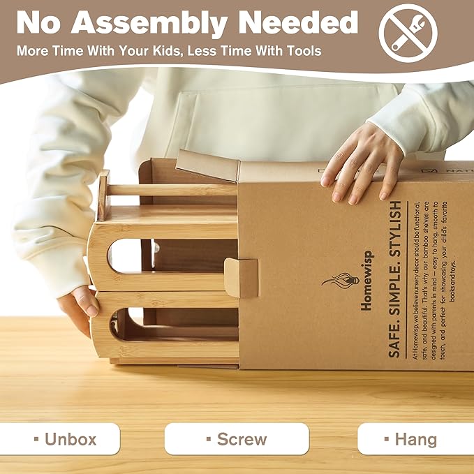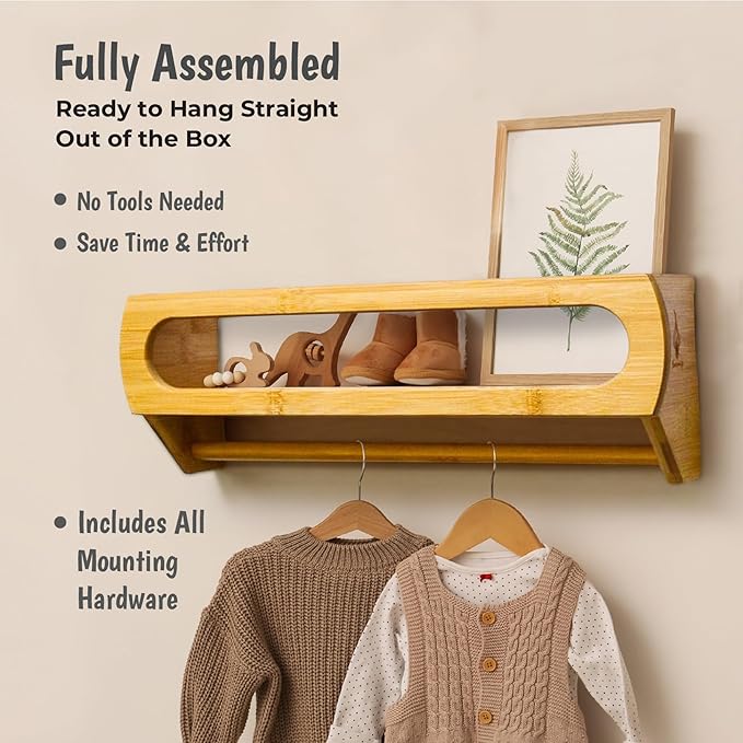 - [Premium Solid Bamboo] High-quality bamboo shelves offering superior strength, stability, and a smooth, natural, organic look — a durable, non-toxic upgrade for any nursery or room.