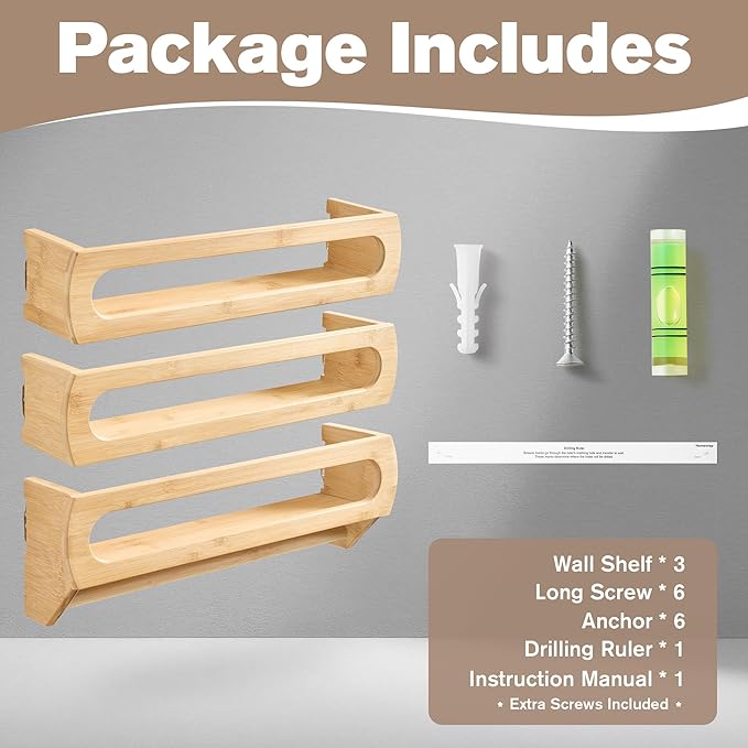 - [Ready to Hang – No Assembly Required] This set of 3 wall shelves arrives fully assembled and includes all necessary hardware (screws, level, and ruler) for fast wall-mounted setup.