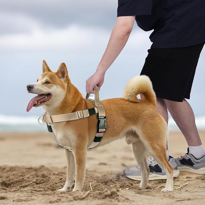 Annchwool Adjustable Dog Harness-Lightweight No Pull Dog Harness with Handle for Small & Medium and Large Dogs-Front Clip Easy for Walking Vest Harness(Brown,M)
