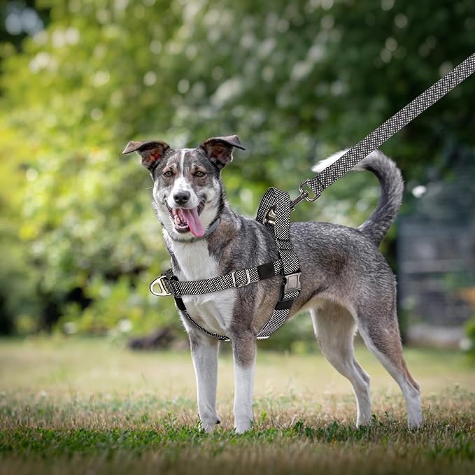 - Perfect Fit & No Pull,No Choke:The dog harness design with adjustable front chest strap+adjustable back strap+adjustable belly strap that can perfectly wrap the dog's body and evenly distribute the pressure.Preventing violent impact better and eliminating pulling,which make the dog easy for walking.