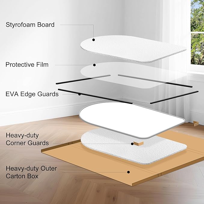 - Packaging: The package for this wall mounted bathroom mirror is well and securely designed for shipping with all-around protective Styrofoam with passed drop test. no worry about the breakage. GLASHOM team will make sure the mirror arrives intact.
