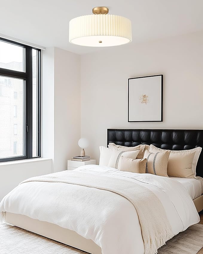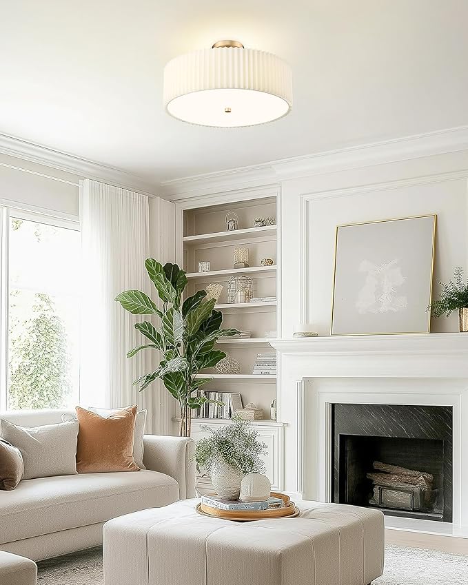 - Elegant Pleated Fabric Shade: Elevate your home decor with our exquisite semi flush mount ceiling light, featuring a sophisticated white pleated fabric shade that diffuses light beautifully. The subtle textures and layered folds add a touch of elegance, making it a stunning decorative piece as well as a functional light source