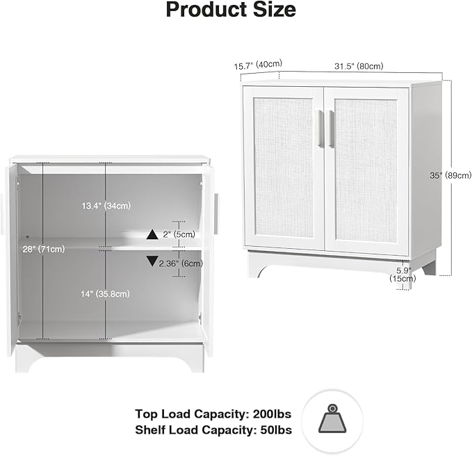 Rattan Cabinet, Sideboard Storage Cabinet with 2 Doors Buffet Cabinet with Adjustable Shelf Large Space, Kitchen Sideboard Buffet for Entryway Hallway