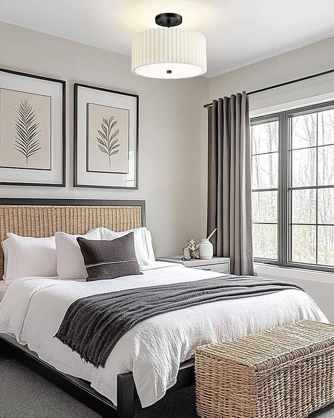 - Pleated Fabric Shade: Crafted with a white pleated fabric shade, the ceiling light fixture beautifully softens light. It's ideal for creating a peaceful atmosphere in small rooms, enhancing the mood of spaces designed for comfort and relaxation. The subtle texture and layered folds add visual interest, making it not just a light source but also a charming decorative accent