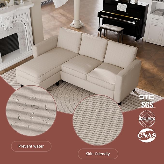 - 【Perfect for Small Spaces】The sectional couch is space-saving, and perfect for small apartments, living rooms, studio spaces, or offices. 73.6(L)x44.1(W)x31.8(H) inch. If you want a set of comfortable sofa but your room is not big enough, our sofa will be your first choice!