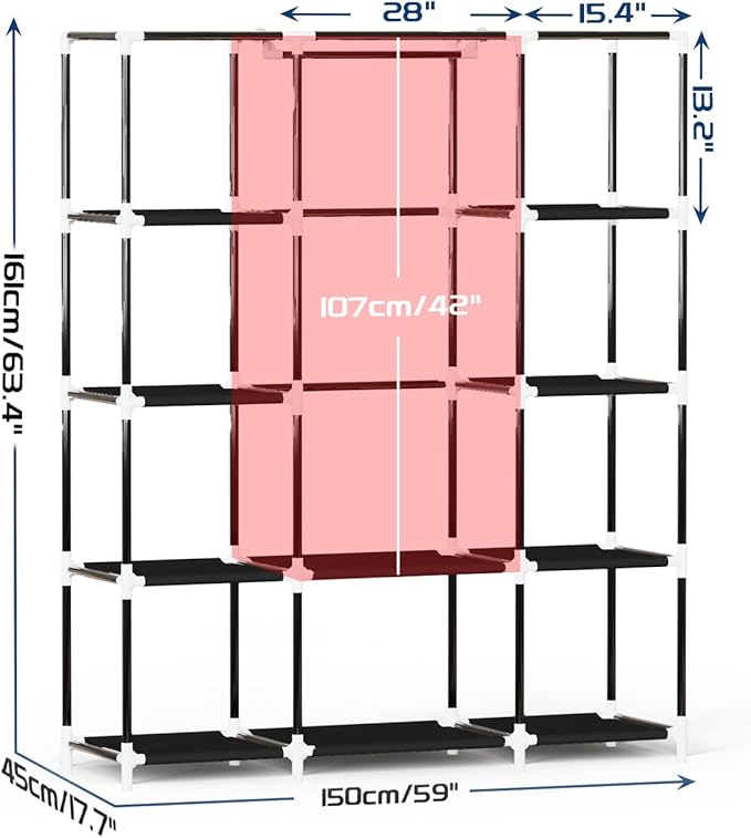 - [Strength to support]: Constructed iron tubes and strengthened PP material connectors, the weight-bearing capacity is greatly enhanced. This wardrobe is strong and durable enough to withstand the weight of your clothes.